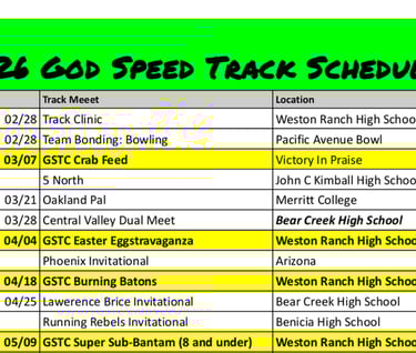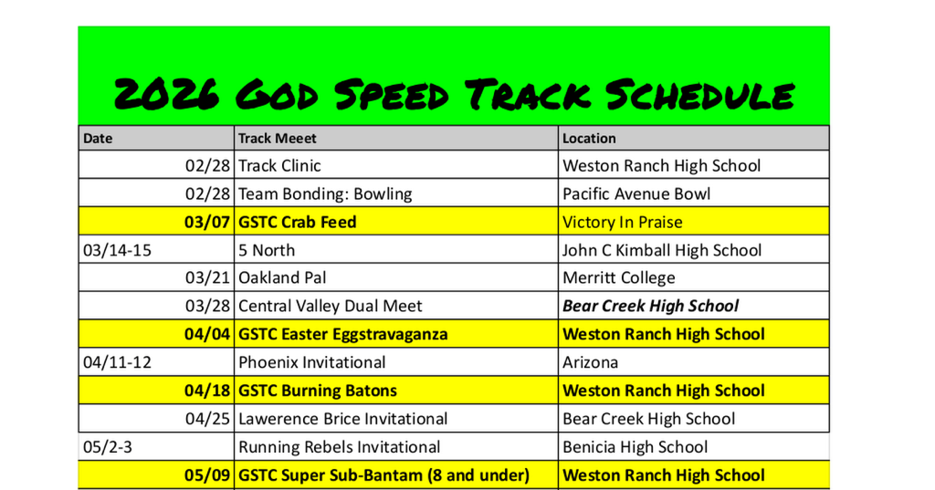 2026 Schedule and Track Meet Information